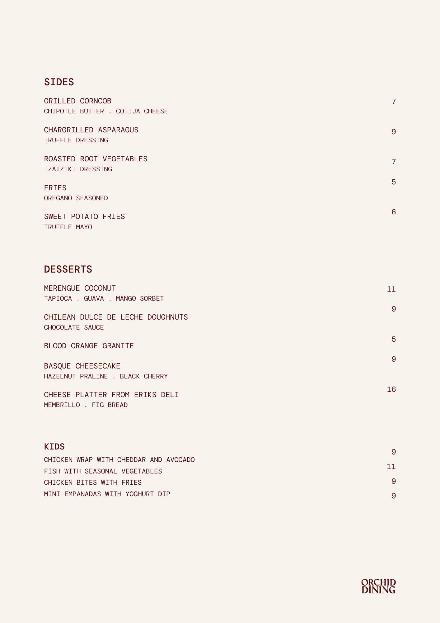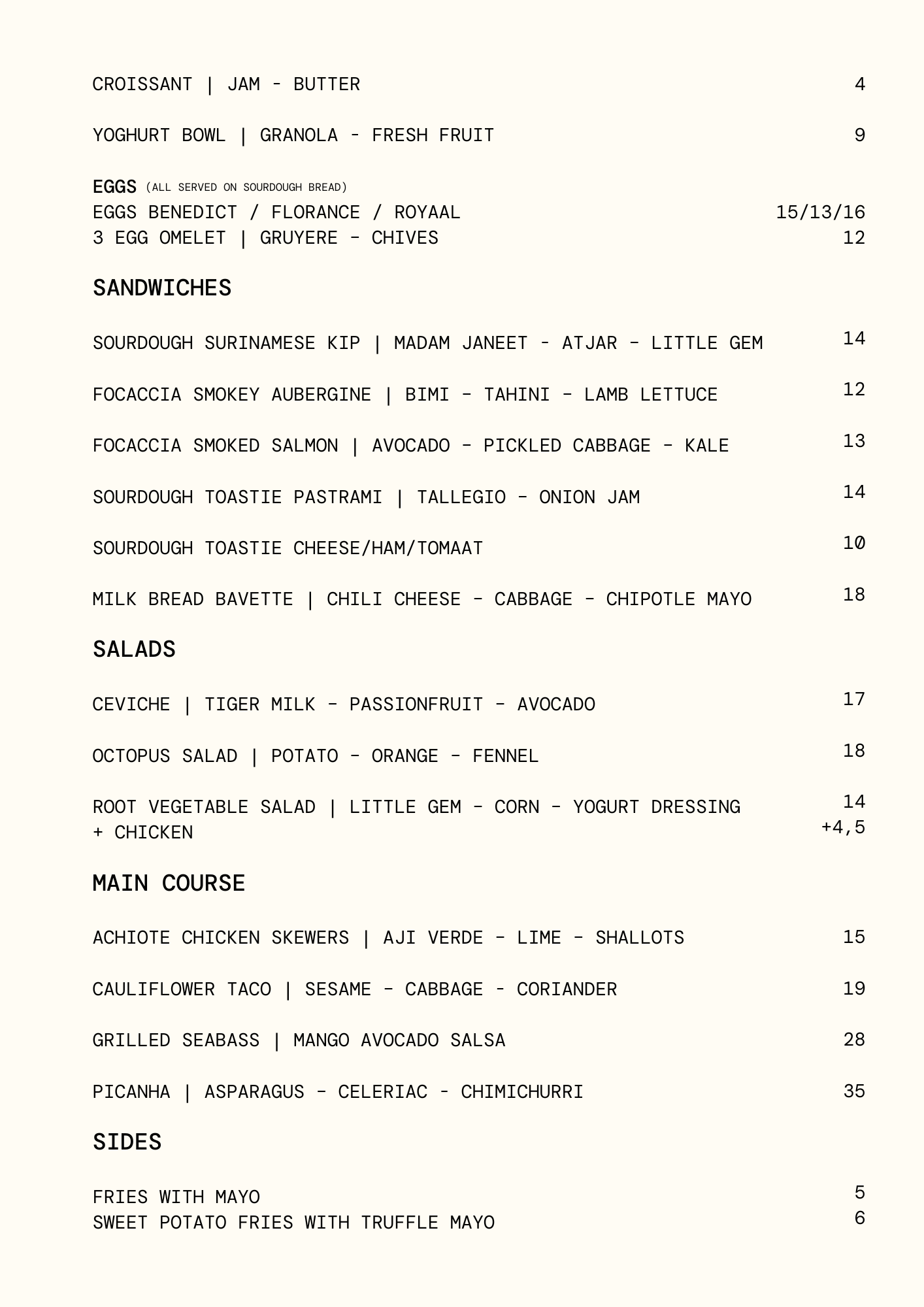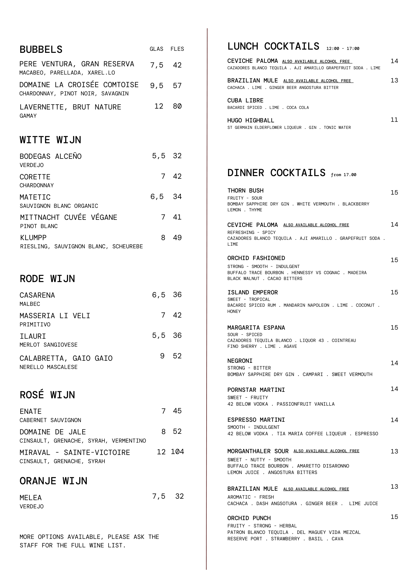 Our lunch and dinner menu follows the seasons. It’s Mediterranean at heart with a Latin twist. Expect vibrant plates, smoky flavours from the grill, brightness from fresh herbs, and desserts that are impossible to skip.